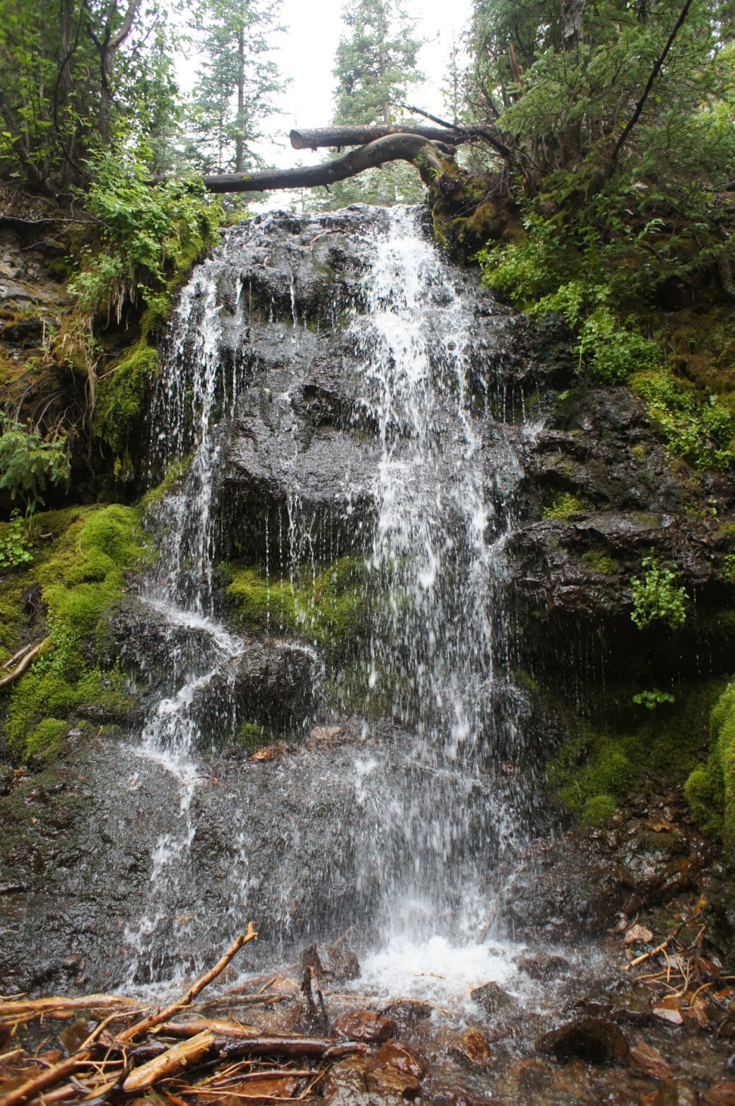 Pole Creek flows east from the slopes of 10,731-foot Blue Ridge to the tiny town of Tabernash. Along the way it slips over a dark slab at “Pole Creek Falls,” filters through moss and greenery, spills back into the creek bed, and settles into beaver ponds at Snow Mountain Ranch, Colorado. Photo by Susan Joy Paul.