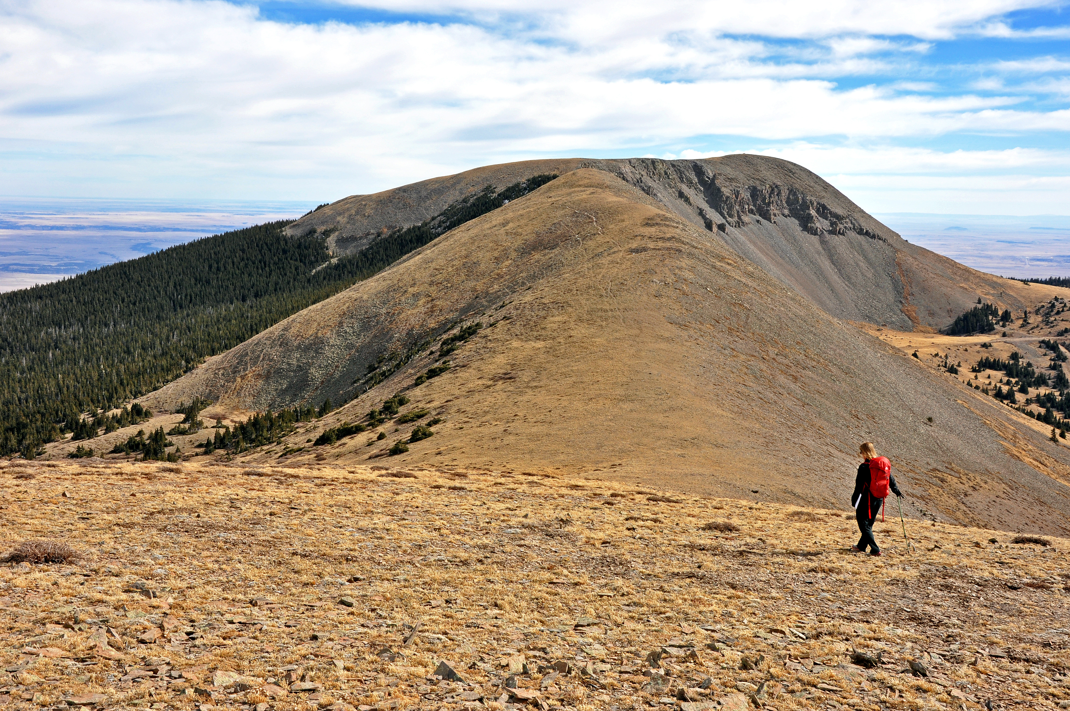 Greenhorn Mountain is the highpoint of the Wet Mountains, a range that picks up where Colorado’s Front Range ends, at the Cañon City Embayment near Cañon City. The Wet Mountains were formed by the San Isabel batholith and a faulted anticline, evidenced by the smooth-shouldered, rolling hills of the range.